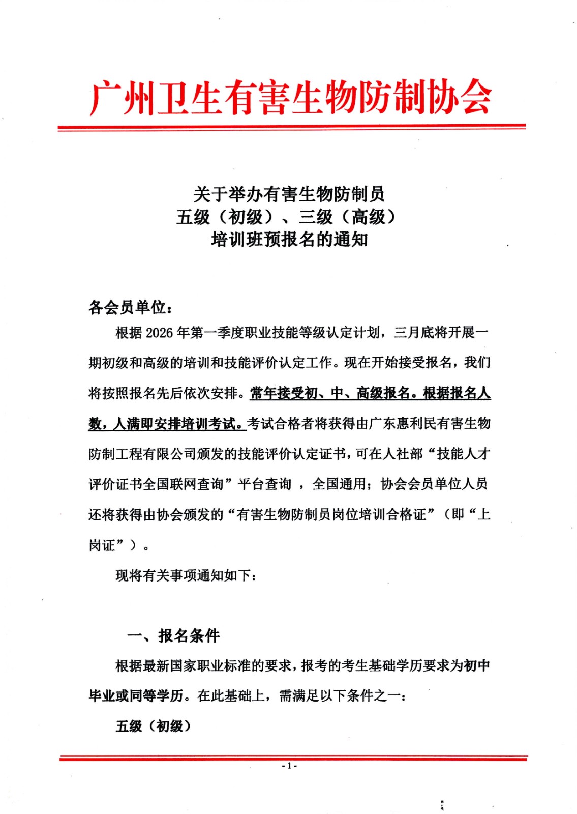 关于举办2026年第一期有害生物防制员初、高培训的报名通知